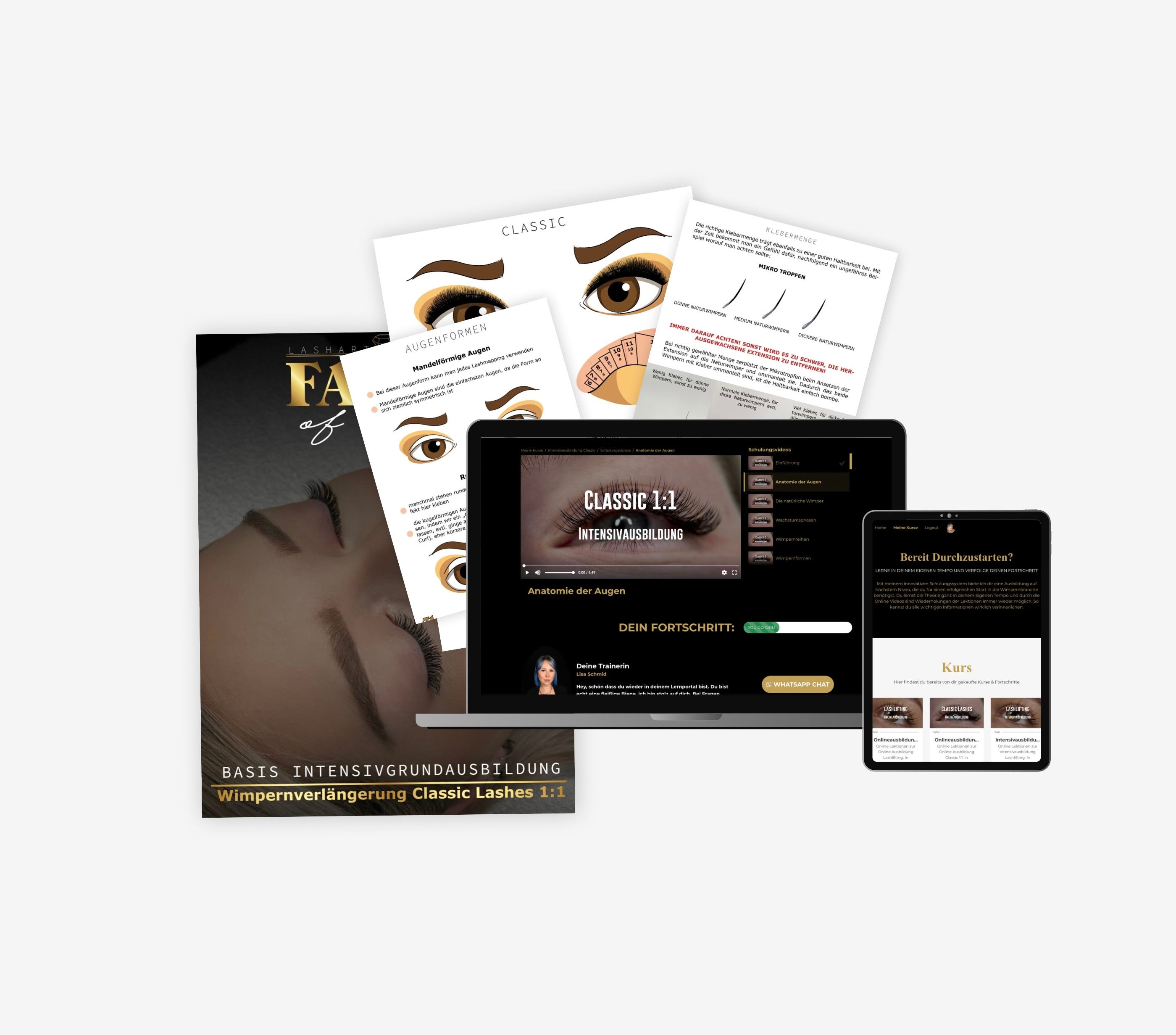 Meine Schulungen für den Start in den Beruf des Wimpernstylisten. Lerne mit meinem Schulungskonzept intensiv wirklich ALLES über Wimpern und das Wimpernbusiness. Diese Ausbildung ist eine Kombination aus Online Theorielektionen & mind. 1 Praxistag. Im Moment gibt es diese Schulung für die Classic 1:1 Technik & das Lashlifting.